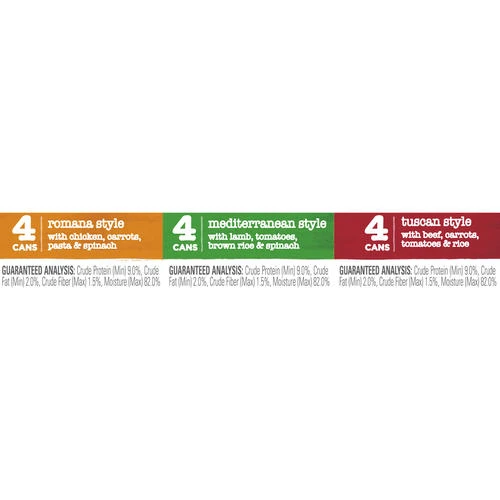 - Contains 4-3 oz. (85g) Cans Tuscan Style; 4-3 oz. (85g) Cans Romana Style; and 4-3 oz. (85g) Cans Mediterranean Style;