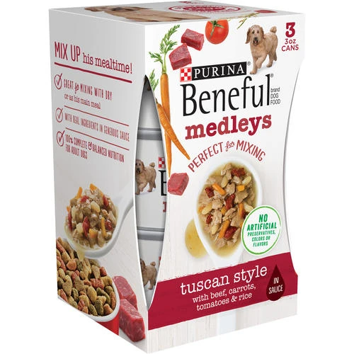 With real meat, veggies and whole grains in a generous sauce, Beneful Medleys let you create a mix-in mealtime experience your dog will savor. Plus it’s oh-so-good on its own.