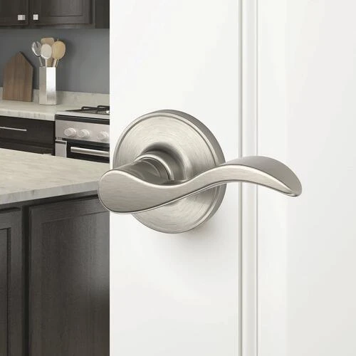 This Dexter® by Schlage® Seville Hall and Closet Passage Lever in a satin nickel finish is perfect for use on doors where locking is not needed. The popular Seville lever effortlessly elevates any space with its sophisticated wave-like design, especially when wrapped in the versatile satin nickel finish. Plus, it has been designed and tested with strength and durability in mind.