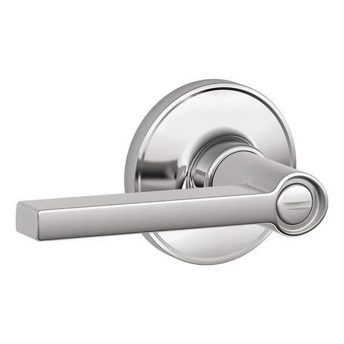 The Schlage Dexter by Schlage Solstice Lever Bed and Bath Lock in Bright Chrome is perfect for use on bedroom and bathroom doors where locking is needed. The Solstice lever offers simple sophistication, with crisp design lines and a structured rectangular look perfect for modern, urban spaces. Our mirror-like Bright Chrome finish adds a touch of drama. Plus, it’s been designed and tested with strength and durability in mind.