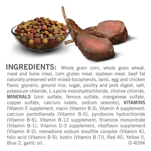 If your dog enjoys a variety of tastes and textures, this dry recipe delivers a tasty combination that?ll have him eating all the way to the bottom of the bowl. Each flavorful serving of tender pieces and crunchy bites is made with real lamb and turkey flavor for the protein your adult dog needs to support strong muscles. The crunchy kibble helps support healthy teeth, and a blend of nutritious ingredients?including 23 vitamins and minerals? supports healthy skin and coat. Because it?s crafted in the USA by Purina employees who choose it for their own dogs, you know you can trust it to help keep your dog active throughout a long and healthy life. Pour a bowlful and watch your dog come running.