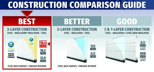 - Best construction with 2″ Intellicore® Insulation, R-Value 18.4 – Warmer. Quieter. Stronger.