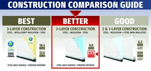 - Better construction with 1-3/8″ insulation, R-Value 6.5
