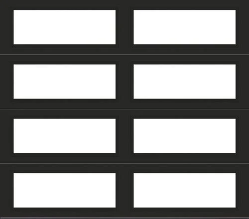 Modern Steel Panel garage doors offer clean and simple lines for beautiful modern exteriors. This Better construction garage door includes 1-3/8″ thick polystyrene (R-Value 6.5) sandwiched between two steel skins that provides a durable insulating core. The three-layer construction provides strength, dent resistance, insulation and security, as well as quiet operation and a beautiful appearance inside and out.