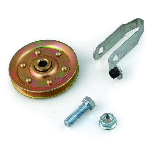 This Ideal Door® Steel Replacement Pulley works for most single and double-wide doors. Constructed from sturdy steel, this replacement pulley includes a one-year manufacturer warranty.