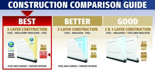 - Best construction with 1-3/8″ Intellicore® Insulation, R-Value 12.9 – Warmer. Quieter. Stronger.