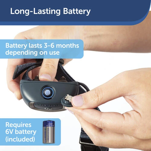 - The bark collar uses a 6-volt alkaline battery; PetSafe® battery replacement part number is RFA-18-11