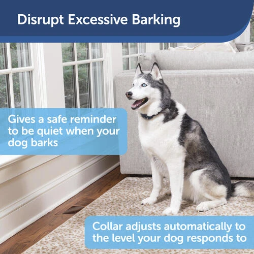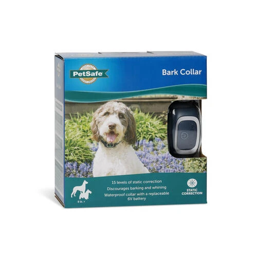 Keep excess barking under control with the new PetSafe® Bark Control Dog Collar. This bark control collar is designed with 15 levels of static stimulation that help discourage nuisance barking and whining. The PetSafe® Bark Collar automatically finds the perfect setting to help your dog learn to stop barking. The correction levels of the collar automatically increase with each bark until barking stops. The static correction is annoying yet safe for dogs. A built-in safety feature automatically shuts the collar off for three minutes if your dog barks more than 15 times within an 80 second period. As your dog learns to bark less, correction levels are reduced. The PetSafe® Bark Collar is a great choice for dogs weighing eight pounds or more and are more than six months old.