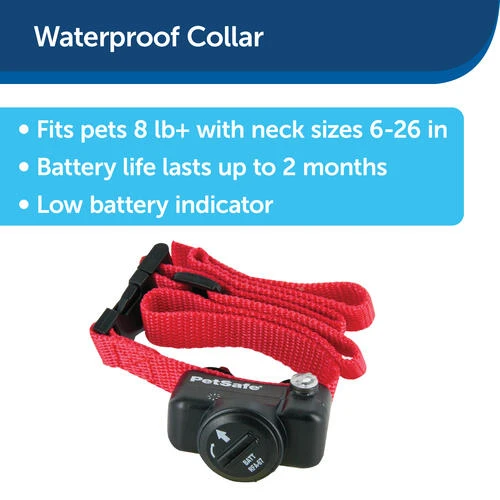 This waterproof receiver has four levels of correction to match the sensitivity of your pet, plus a tone only mode for training. It includes an adjustable nylon collar, a battery, short and long contact points and an operating guide. It is compatible with all PetSafe® in-ground fences except YardMax and can be a replacement to your Deluxe In-Ground Fence (PIG00-13661).