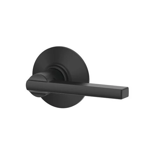 The Schlage® Latitude Matte Black Passage Door Lever is perfect for use on hall and closet doors where locking is not needed. The Latitude Lever offers a crisp perspective on minimalist design with its clean lines and rectangular features and looks especially elegant when finished in Matte Black. The universal design of this passage door lever set allows it to be mounted to left or right swing doors. Plus, it’s been designed and tested with strength and durability in mind.