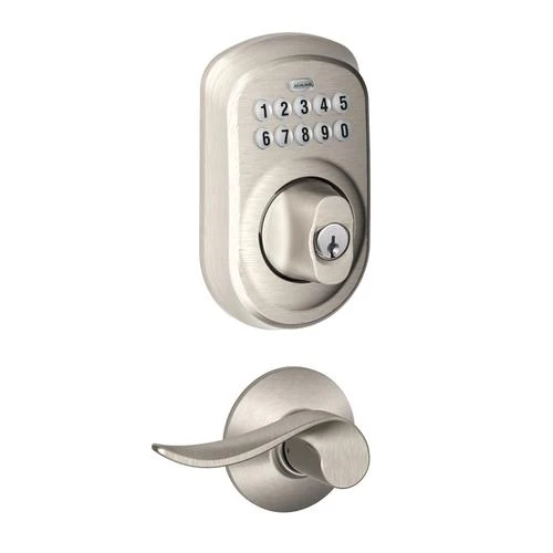 This Schlage® Keypad Deadbolt and Sacramento Lever in satin nickel is perfect for use on front doors, garage entry doors, and side and back doors. With a keypad deadbolt, you can control entry to your home more easily and securely. No more hiding keys under the doormat or losing track of copies! Simply use access codes that can be created or deleted in seconds. The Sacramento lever is polished and playful, with an arched design that lends itself to almost any style – especially when wrapped in the versatile satin nickel finish. Plus, its been designed and tested with strength and durability in mind.